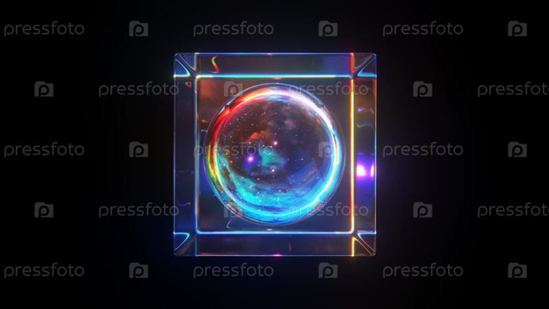 3d представил абстрактный стеклянный куб с другой сферой внутри. детальное отражение и рассеивание
