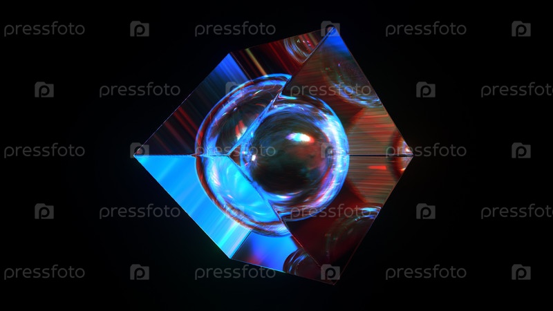 3d представил абстрактный стеклянный куб со сферой внутри. детальное отражение и рассеивание