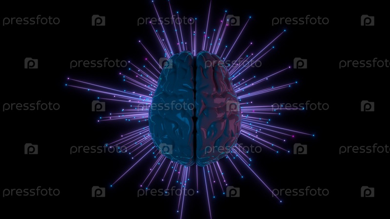 Абстрактная визуализация активности человеческого мозга со следами и частицами