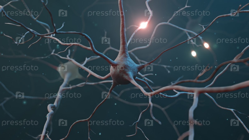 Передача сигнала кластера нейронов внутри человеческого мозга