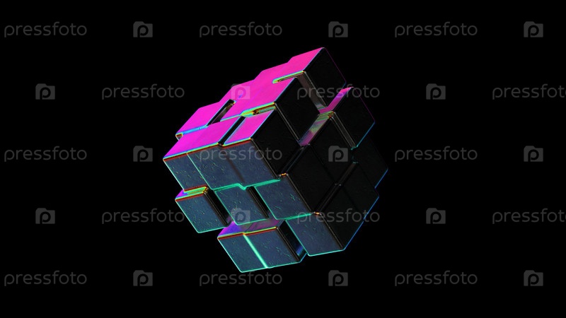Абстрактная металлическая кубическая форма Morphing 3d render