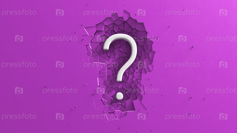 Минималистическая анимация большого белого вопросительного знака с эффектом удара на розовом фоне 3D-рендеринга
