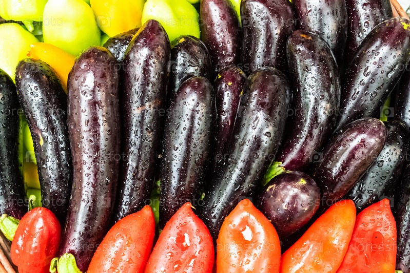 Баклажаны и перец вместе. красный и зеленый перец
