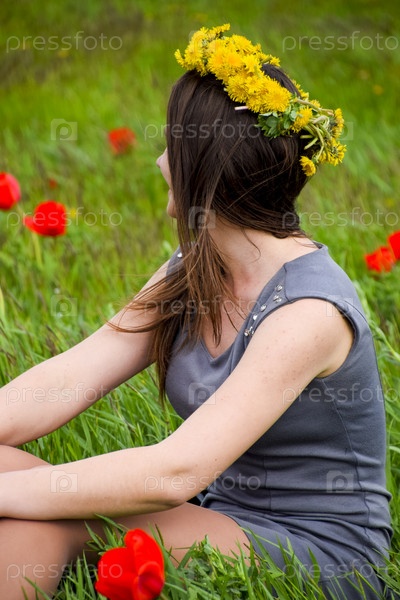 Красивая фея маленькая девочка в поле среди цветов тюльпана