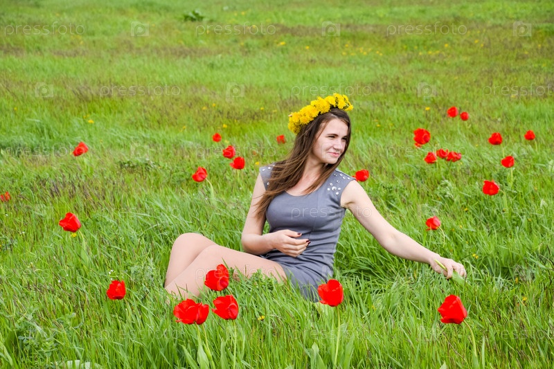 Красивая фея маленькая девочка в поле среди цветов тюльпана