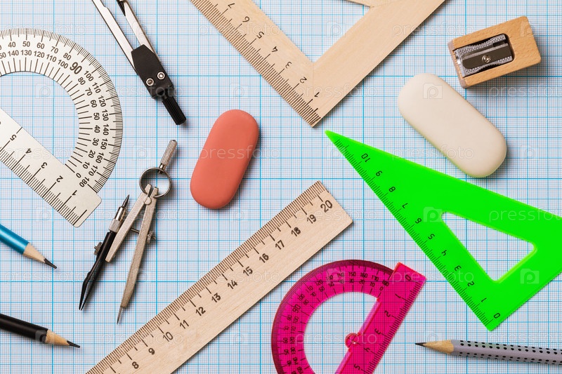 Фон из различных инструментов на бумаге для рисования с масштабными координатами, вид сверху