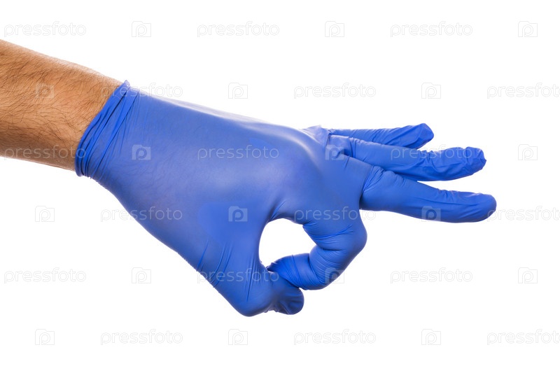 Рука в медицинской перчатке щелкает пальцами, изолированными на белом фоне. Щелчок пальцем