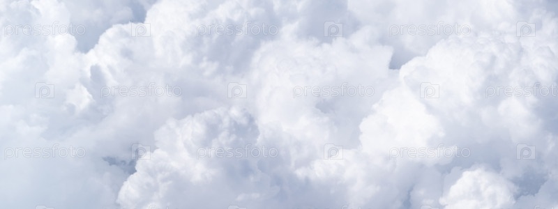 Баннер. Голубое небо с белыми облаками в солнечную погоду. Пушистое небо, облачный вид, атмосфера