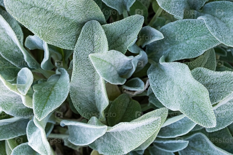 Фон из растения Stachys byzantina или бетоновый шерстистый, ухо ягненка. текстура зеленого листа