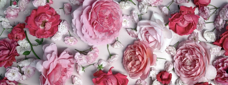 Шаблон для романтической поздравительной открытки с мягкими пастельными розовыми розами на розовом фоне. Цветочная рамка из розовых цветущих цветов. Нежно цветущие праздничные светлые розы
