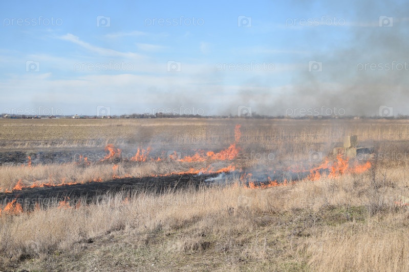 Сжигание сухой травы и тростника