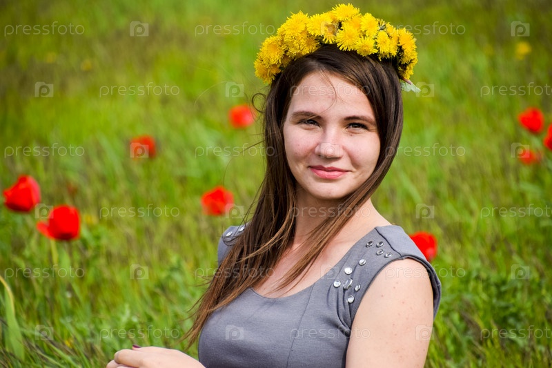 Красивая девушка в поле среди цветов тюльпана
