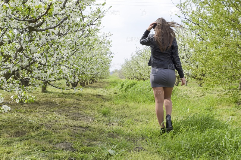 Красивая фея молодая девушка в цветущем сливовом саду. Портрет