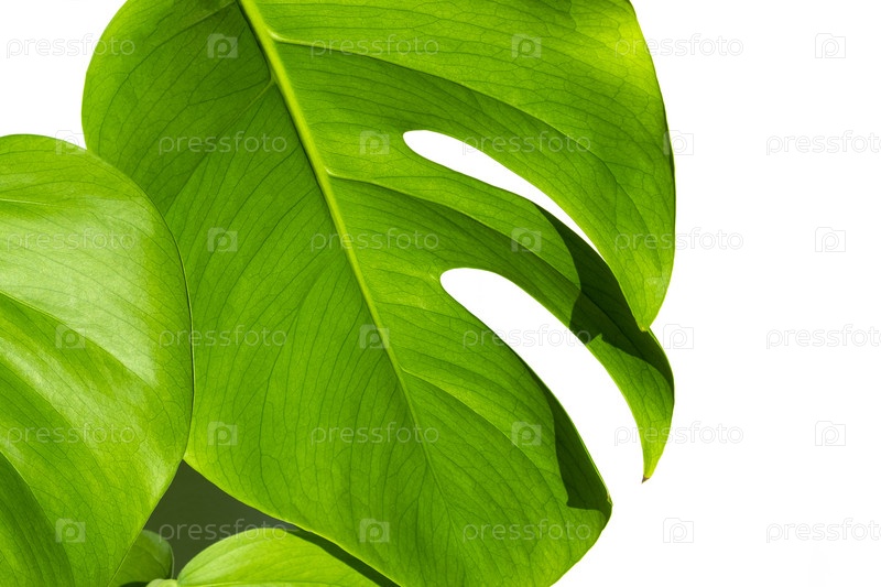 Растение монстера в белом горшке на белом изолированном фоне. Концепция минимализма. Листья монстеры деликатесной или швейцарский сырный завод на фоне тропических листьев в горшке. резкие тени
