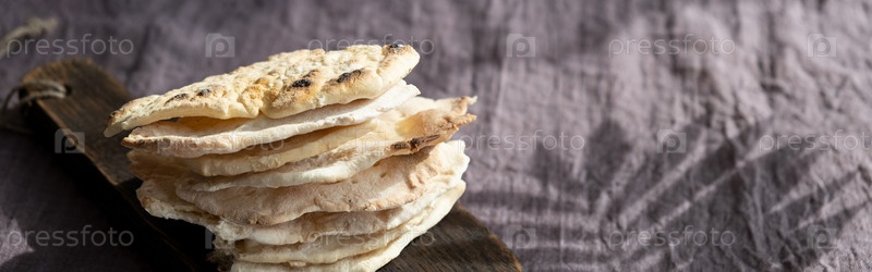 Домашняя маца с микрозеленым горошком. Бездрожжевой лепешка. Концепция празднования Песах. Еврейская Пасха фон. Пита