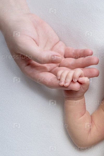 Рука новорожденного ребенка в маминой руке. Нежность и забота о здоровье в первые дни жизни. Беременность и рождение детей