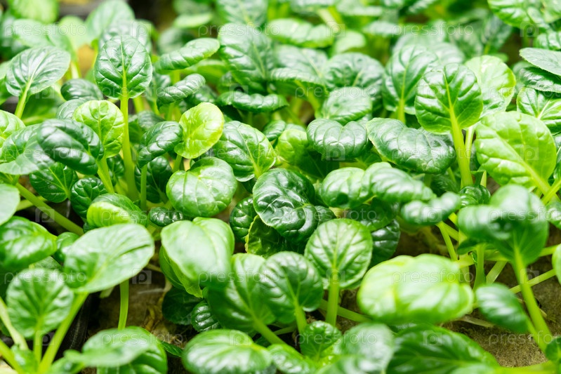 Зеленые листья салата эденвия, выращенные на микроферме агропонным методом