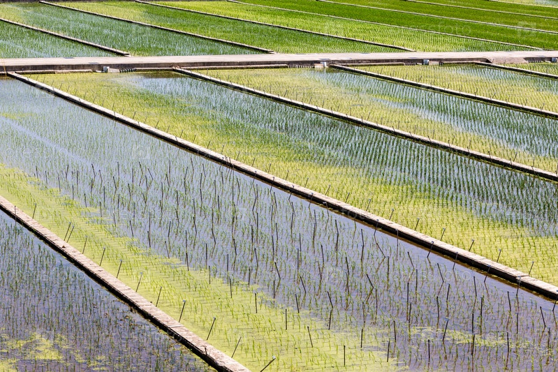 Зеленые азиатские органические рисовые поля. Крупный план изображения
