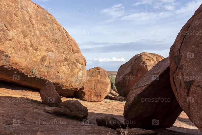 Мрамор Дьявола — огромные гранитные валуны, разбросанные по широкой неглубокой долине в 100 км к югу от Теннант-Крик на Северной территории, Австралия