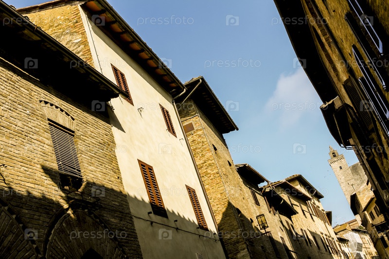 Узкая улица в маленьком городке Фьезоле, Италия, вид под низким углом