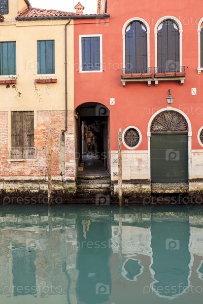 Дома, отражающиеся в узком канале в Венеции, Италия