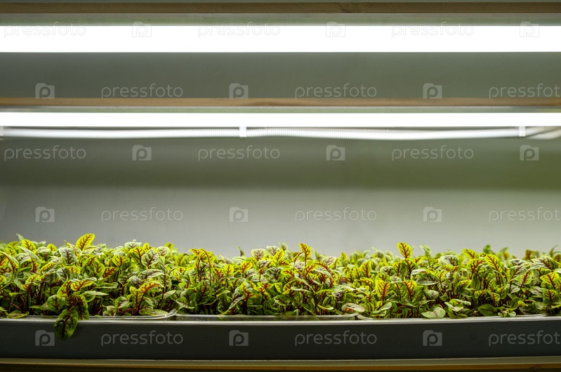 Городская ферма по выращиванию микрозелени. Экологичный малый бизнес. детские листья, фитолампа
