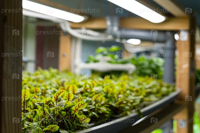 Городская ферма по выращиванию микрозелени. Экологичный малый бизнес. детские листья, фитолампа