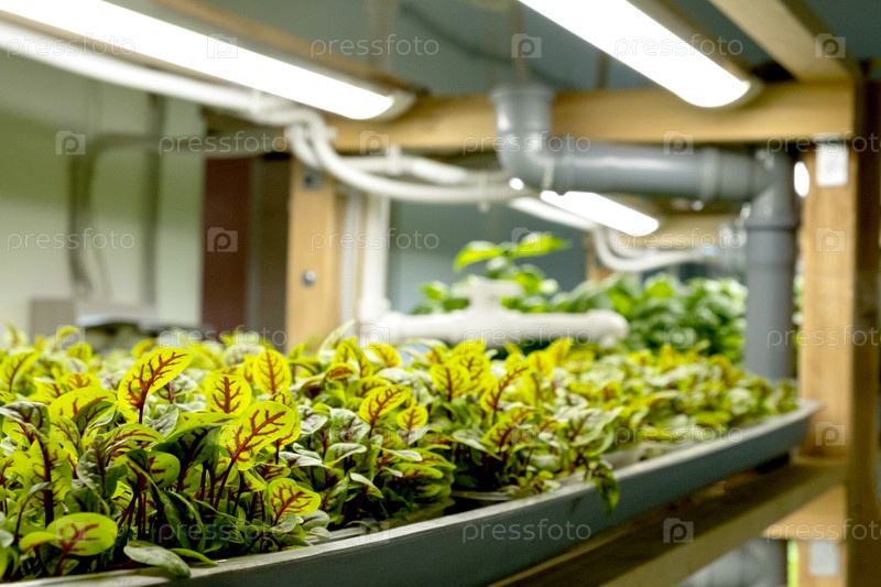 Городская ферма по выращиванию микрозелени. Экологичный малый бизнес. детские листья, фитолампа