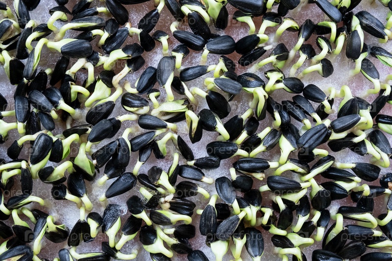 Ростки подсолнуха. пропорциональные семена. здоровая сырая пища, микроэлементы
