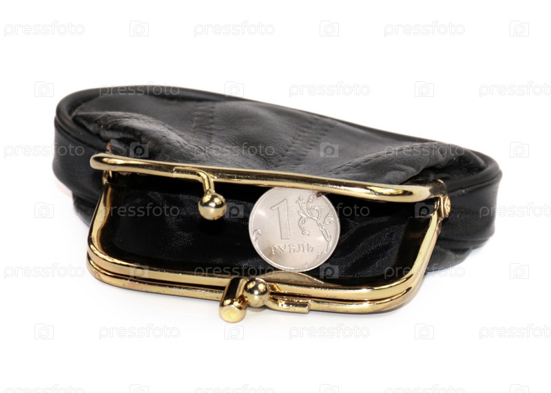 Металлический российский рубль в старом пенсионерском кошельке бедного пенсионера