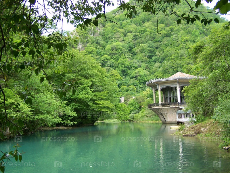 Беседка в воде на фоне заросшей местности