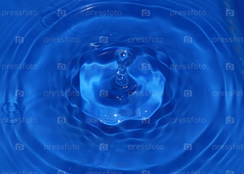 Красивые узоры на поверхности прозрачной воды после попадания капли жидкости