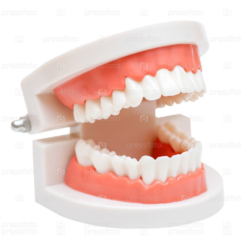 Стоматологическая модель челюсти на белом фоне. Гигиена полости рта