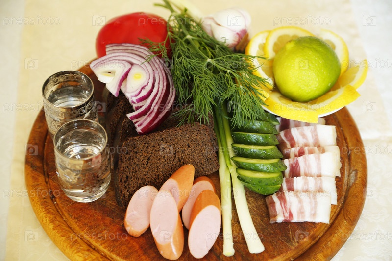 Натюрморт сало с водкой
