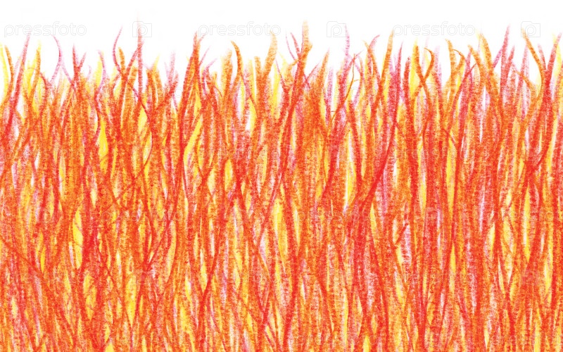 Текстура штриховки красным и желтым карандашом. Фон из волнистых линий. Нарисованный абстрактный огонь