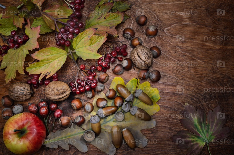 Ветка калины сухие листья и яблоки