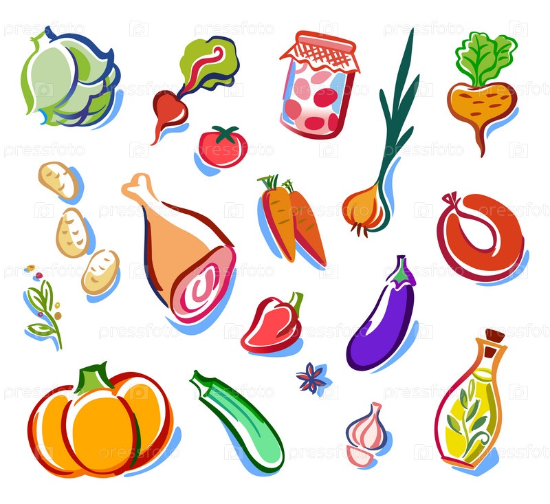 Набор продуктов для приготовления пищи: овощи, мясо, приправы