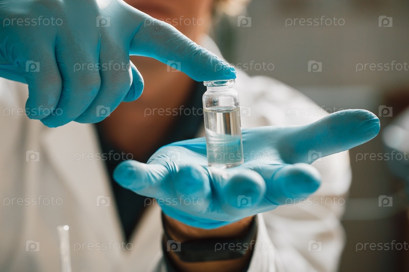 Растительное масло, ученый держит бутылку масла. Лечение травами, Альтернативная медицина. флакон с лекарством