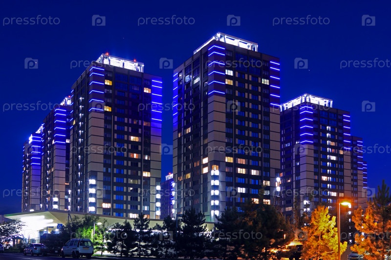 Вечерний снимок высотного элитного жилого комплекса