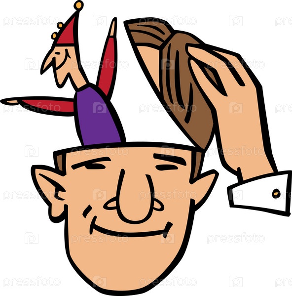 Клоун, голова человека с игрушкой-Петрушкой, цветной вариант