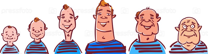 Набор портретов одного мужчины в разном возрасте, от младенца до старика