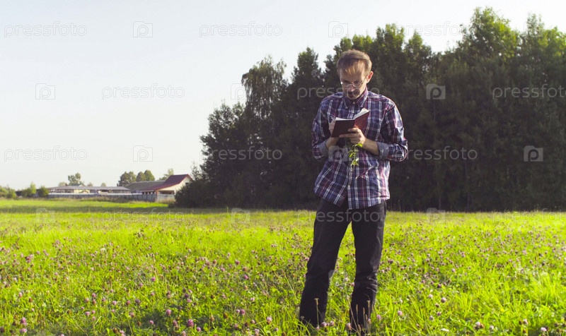 Мужчина-эколог делает записи в дневнике