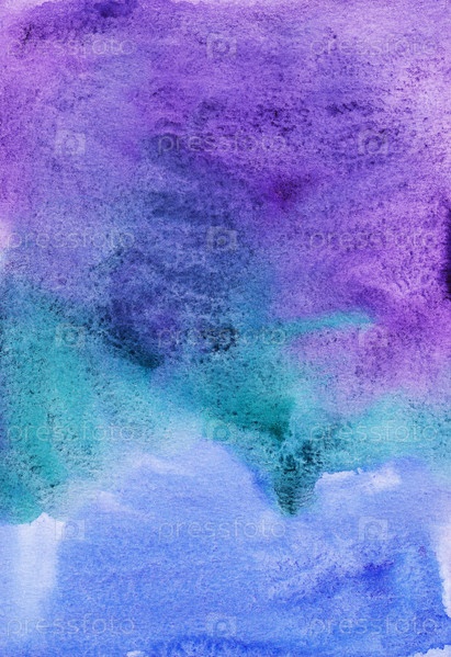 Акварель жидкий красочный фон искусства. Текстура акварели синяя, фиолетовая, зеленая пятна на бумаге. Яркий акварельный фон