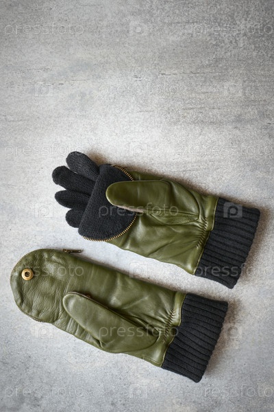 Стильные зеленые кожаные перчатки-рукавицы женские, с застежкой-молнией