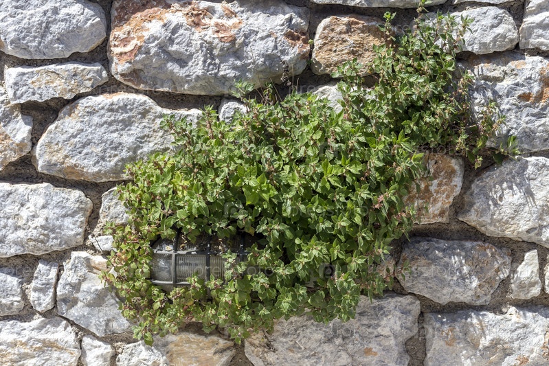 Фон серый натуральный камень и растение