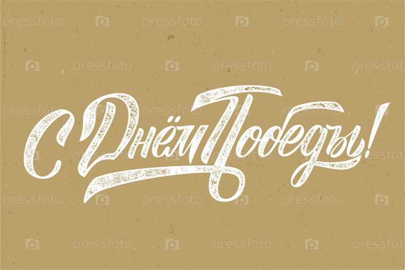 День Победы! Векторная иллюстрация. Русский праздник, рукописные надписи. Векторный дизайн типографии ко Дню Победы для поздравительных открыток и плакатов