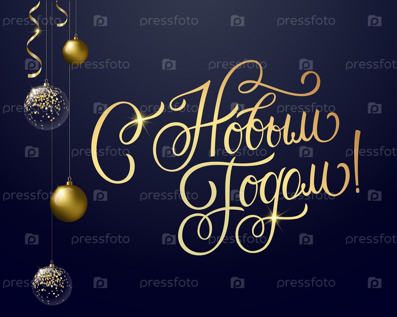 Векторный текст. С Новым годом - русский праздник. С Новым годом рукописные надписи, векторный дизайн типографии для поздравительных открыток и плакатов