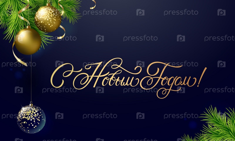 Векторный текст. С Новым годом - русский праздник. С Новым годом рукописные надписи, векторный дизайн типографии для поздравительных открыток и плакатов