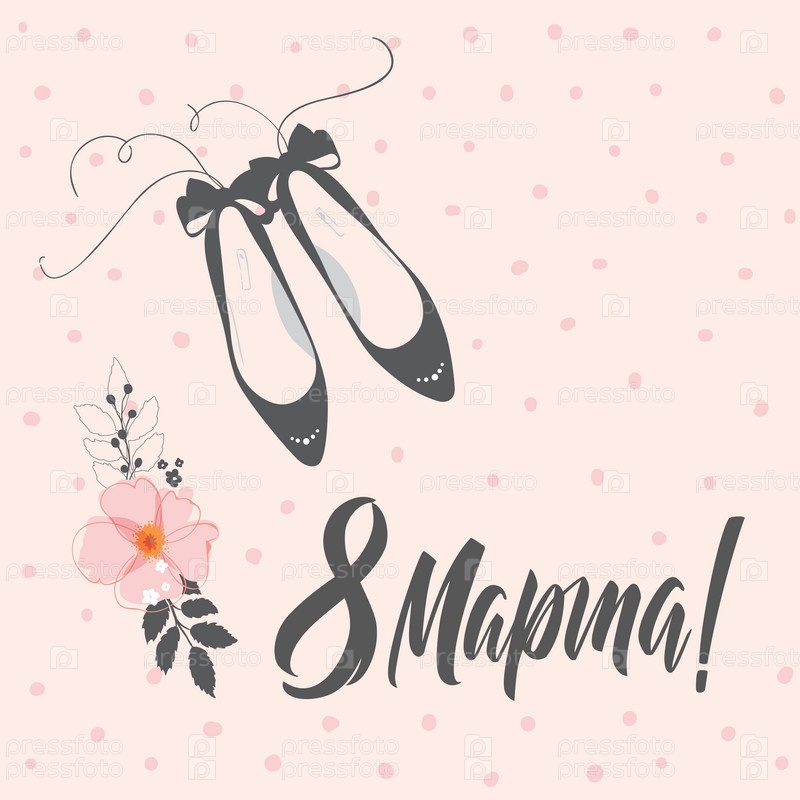 8 марта - Русская красивая надпись на русском языке. 8 марта рукописные надписи с нежными розовыми цветами, типографский векторный дизайн для поздравительных открыток и плакатов