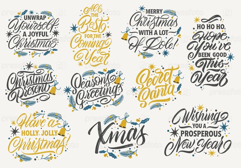 Новогодние и рождественские фразы. Векторный набор надписей на Рождество. Дизайн плаката, поздравительной открытки, приглашения на вечеринку. Векторная иллюстрация